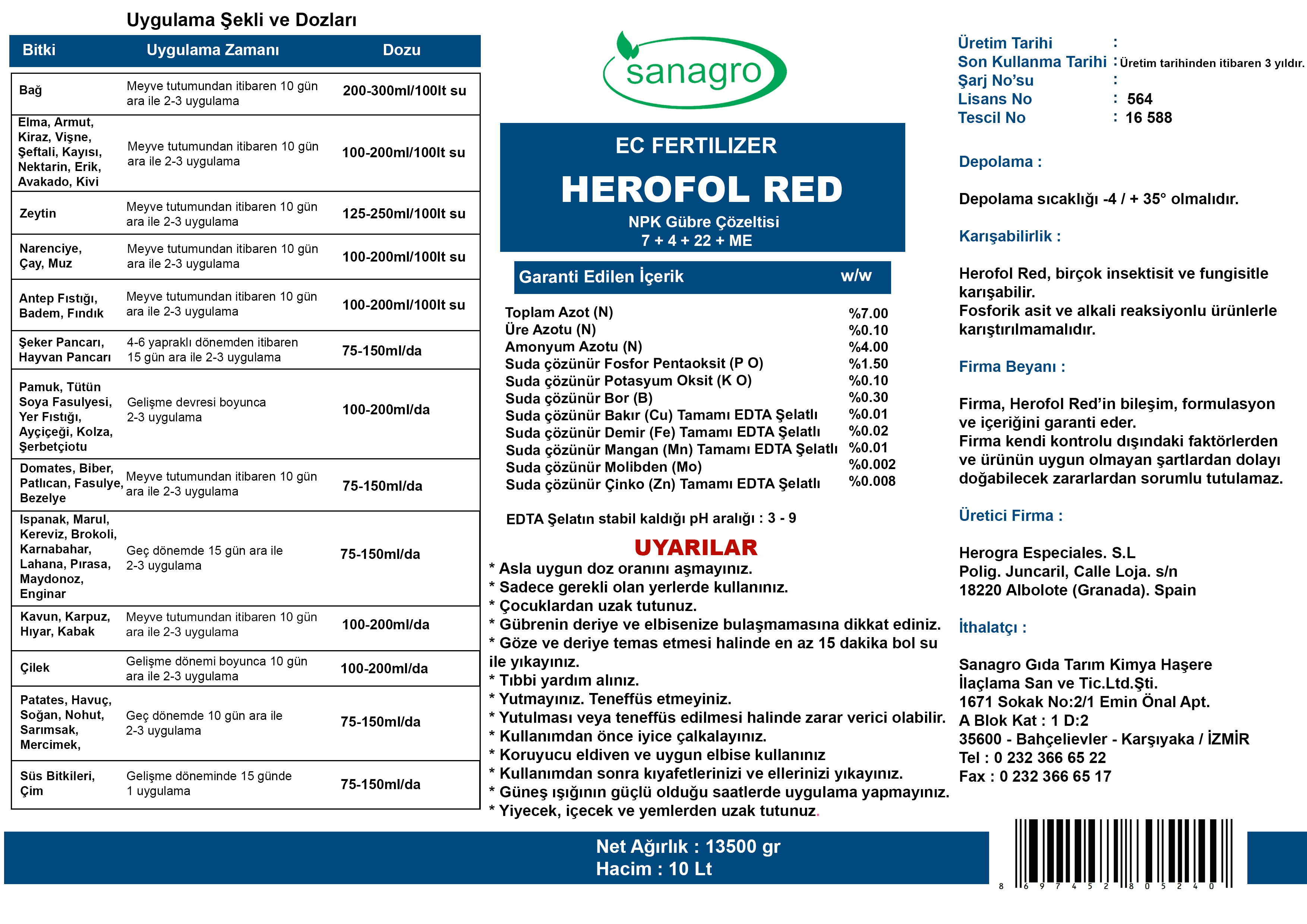 Suda Çözünür Tamamı EDTA ile Şelatlı Demir (Fe) | %0,02 |