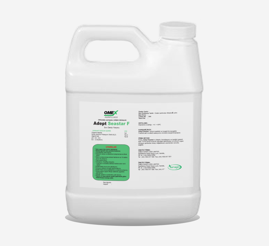 Özel Bir Yosun Olan Laminaria'dan elde edilmiş, yine özel bir teknik ile üretilmiş % 100 organik biostumulanttır. Bitkilerin sezon boyunca gereksinim duyduğu birçok besin maddesini doğal olarak içerir. Kültür bitkilerinde geniş kulanımı olan Adept Seastar F Omex kalitesi ile imal edilmiştir.